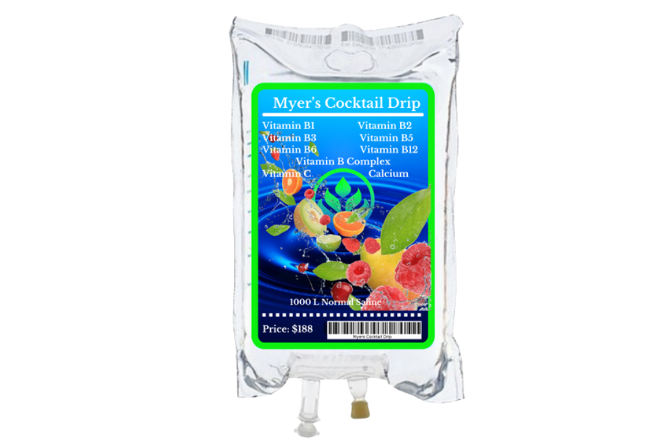 Embrace a holistic approach to wellness with the Myers Cocktail Drip, a renowned IV treatment offering a comprehensive solution for various health concerns. This well-known therapy is tailored to address a spectrum of conditions, including migraines, allergies, anxiety, muscle spasms, colds, flu, and more. The carefully curated blend of vitamins and minerals in the Myers Cocktail includes B3, B12, Magnesium Chloride, B5, B1, B6, B2, B Complex, and Calcium, all working synergistically to promote optimal health and well-being. Vitamin C, a powerful antioxidant, supports the immune system and contributes to overall vitality. B vitamins play crucial roles in neurological health, energy metabolism, and immune function, making them essential components of this therapeutic blend. Magnesium Chloride helps relax muscles and alleviate tension, providing relief for conditions such as muscle spasms. The inclusion of Calcium further contributes to bone health and overall wellness. With low potential side effects, the Myers Cocktail Drip offers a safe and effective way to boost your immune system and address various health concerns.